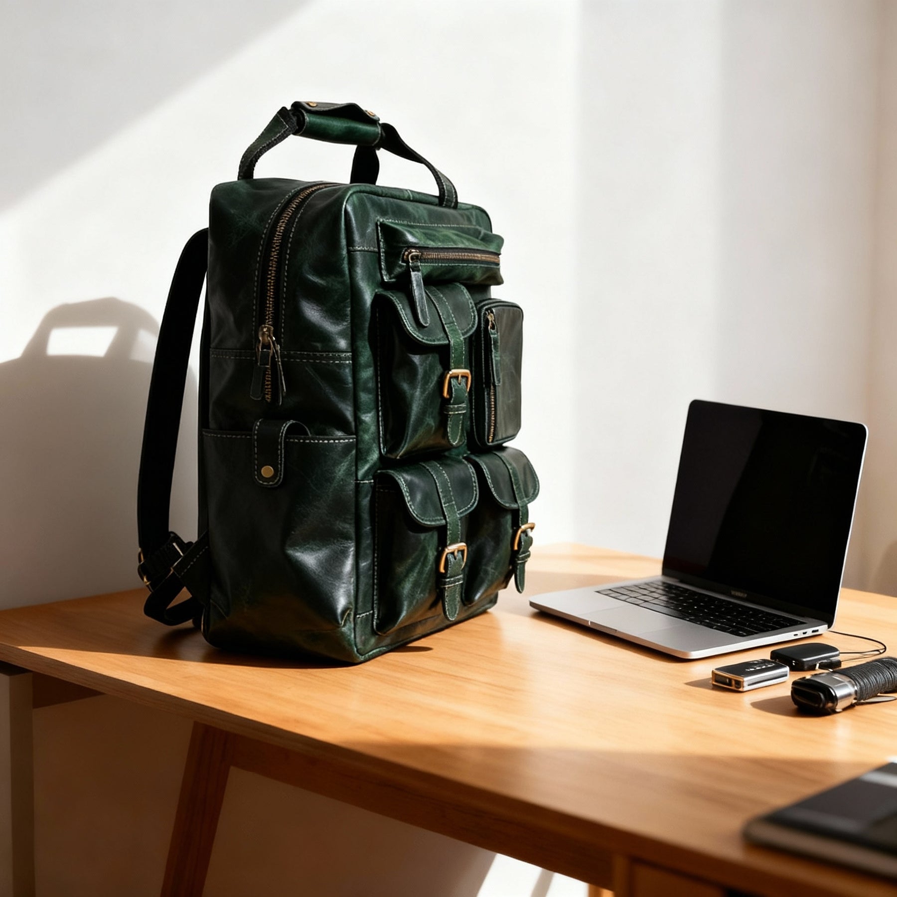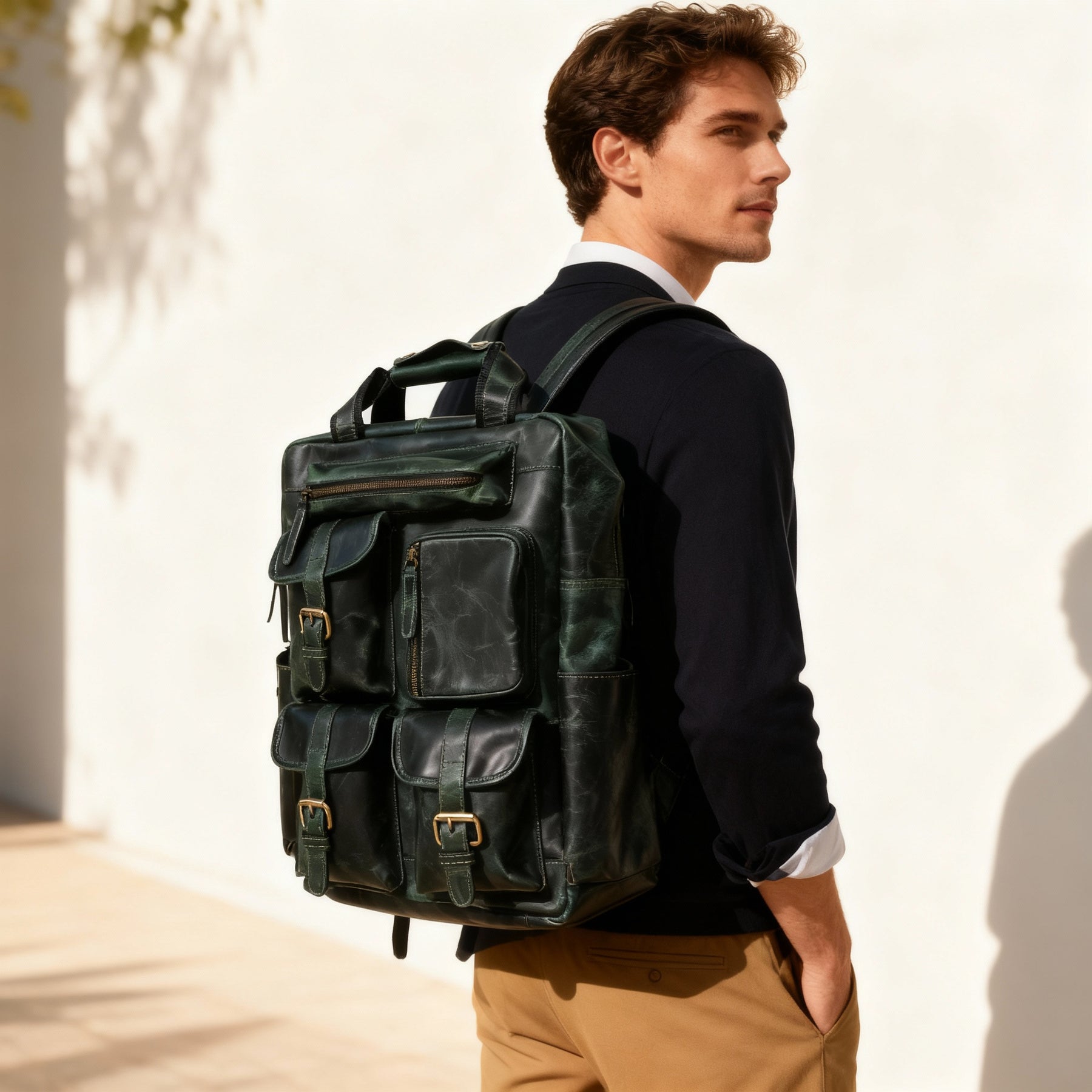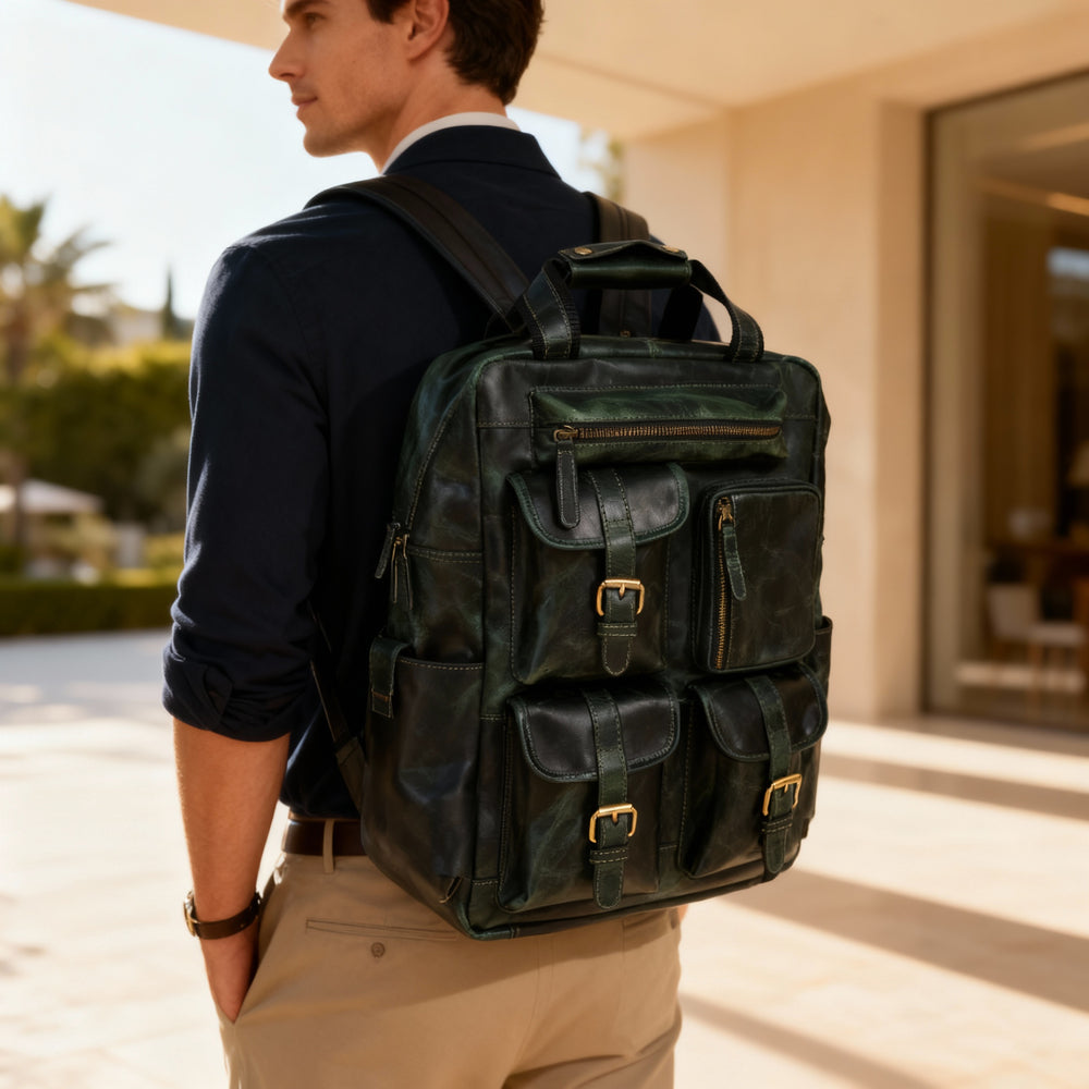 Built for modern explorers who value both style and substance, this backpack blends vintage charm with everyday functionality. Multiple front pockets, antique brass buckles, and durable zippers provide quick access and lasting reliability, while the spacious interior easily fits a laptop, travel gear, and essentials for the day.
